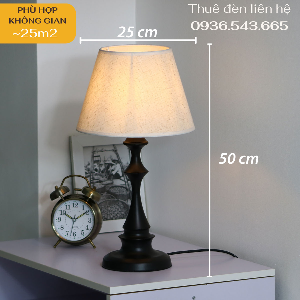 - Kích thước đèn: 25x50cm (Đường kính chao đèn x Chiều cao)