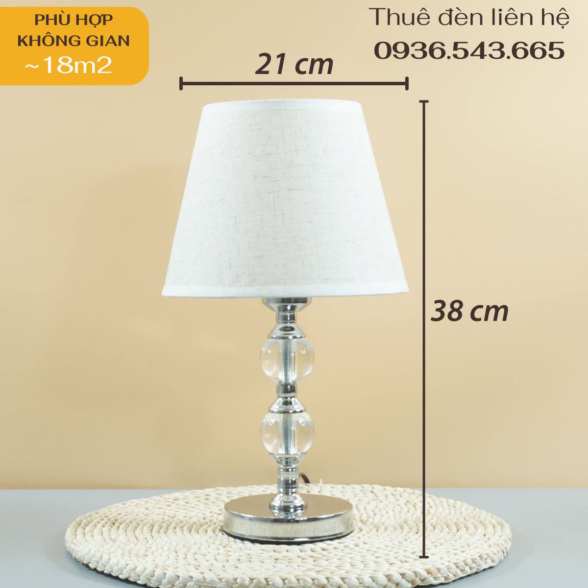 - Kích thước đèn: 21x38cm (Đường kính chao đèn x Chiều cao)