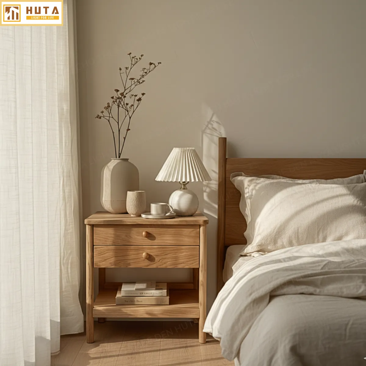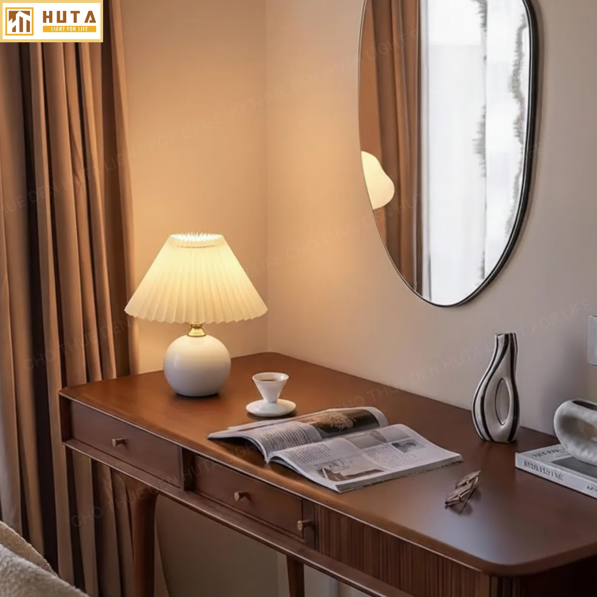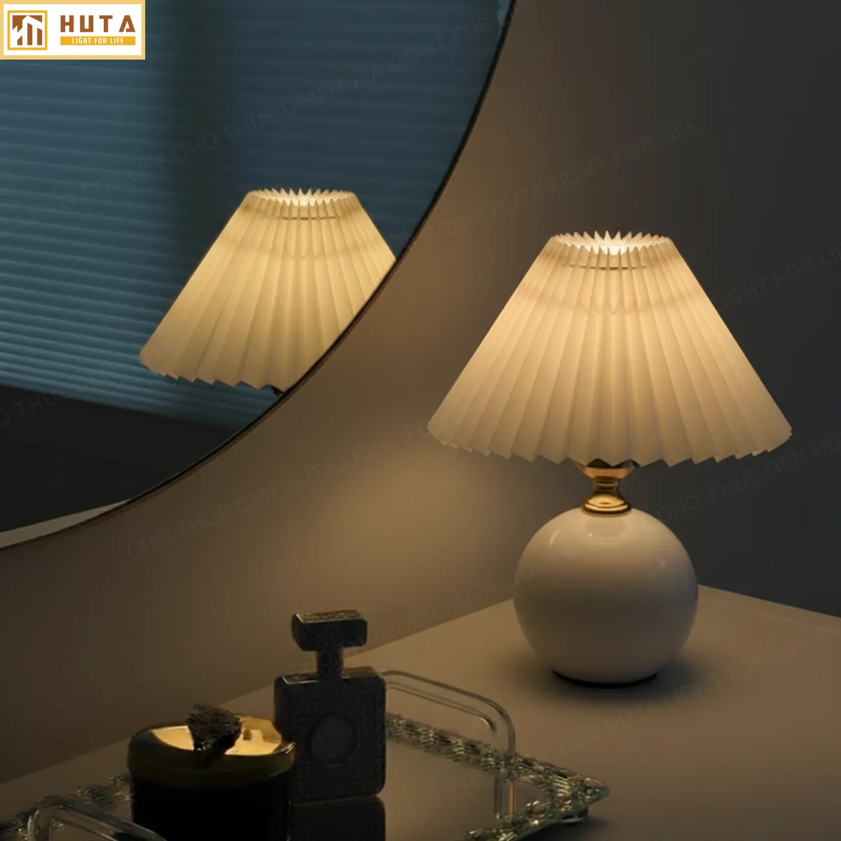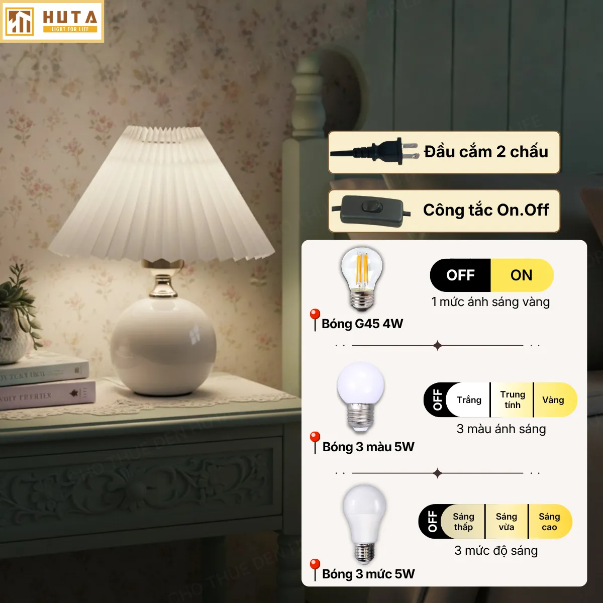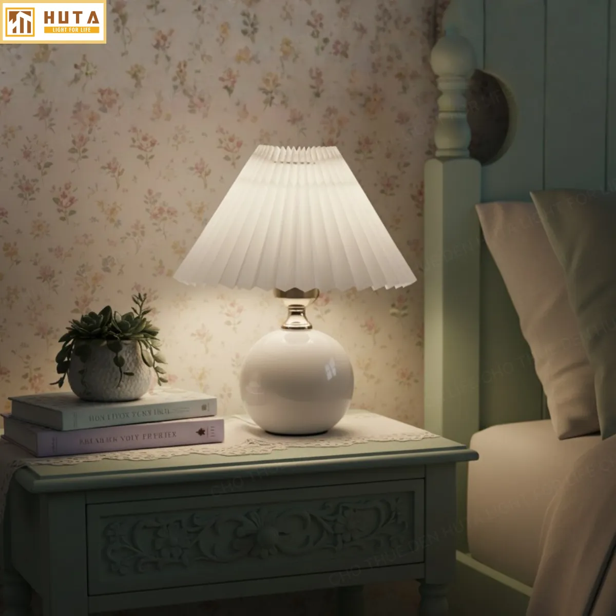Đèn ngủ để bàn HUTA Light For Life mã S8 chao vải ép nhựa với phần thân gốm sứ mang phong cách Hàn Quốc kết hợp với ánh sáng vàng nhẹ dịu, tạo cảm giác thư giãn, sang trọng và tinh tế cho không gian của bạn.