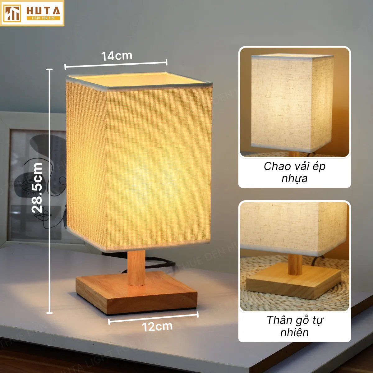 Đèn ngủ để bàn HUTA Light For Life mã G3 Đèn ngủ để bàn G3 được thiết kế với kiểu dáng nhỏ gọn, thân gỗ tự nhiên và chao vải ép nhựa bền đẹp. Mỗi chi tiết đều được hoàn thiện tỉ mỉ, đảm bảo an toàn và tính thẩm mỹ cao.