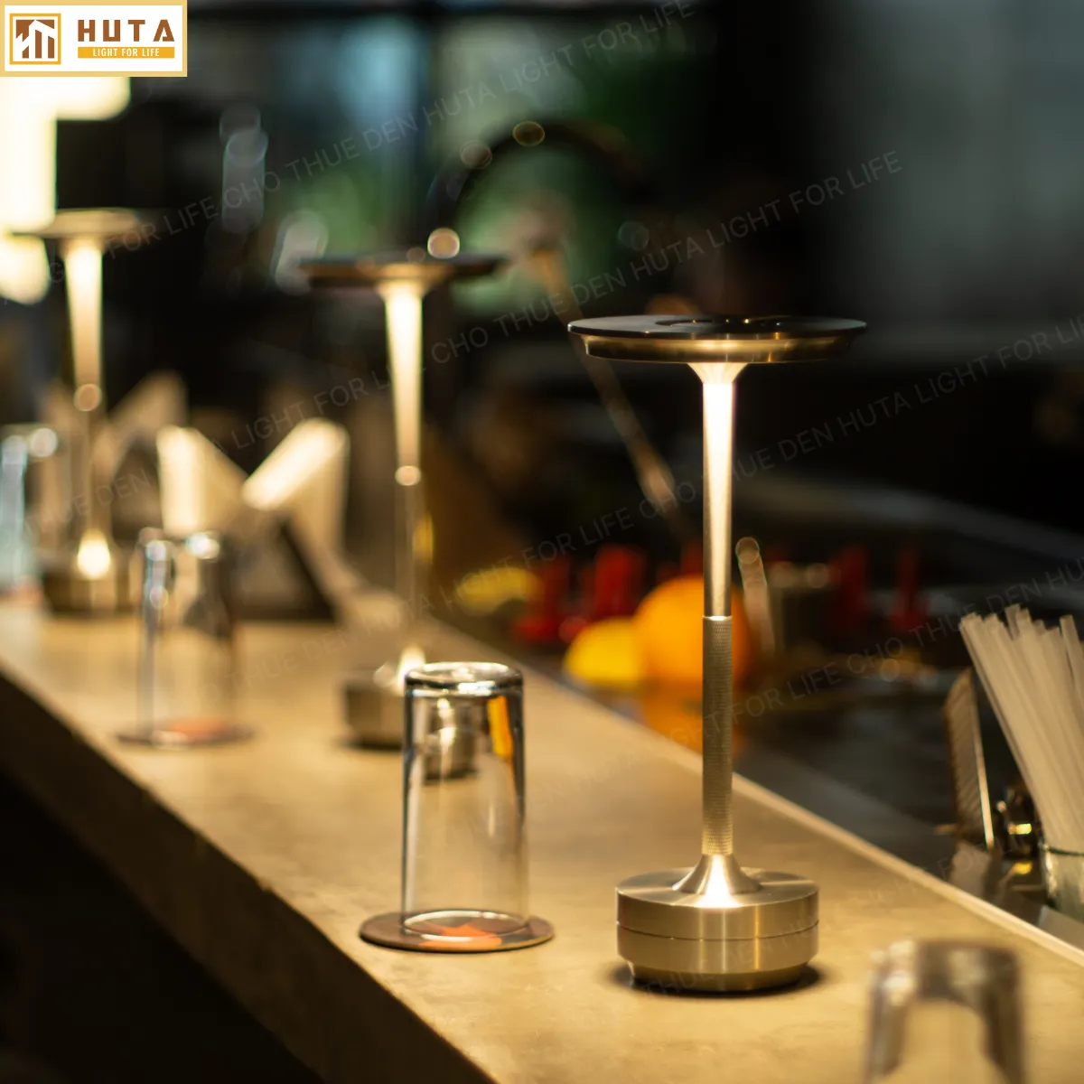 Đèn bàn LED quầy bar AL4 được thiết kế tạo không gian ánh sáng độc đáo, ấm áp và thu hút, giúp quầy bar trở nên nổi bật hơn. Sản phẩm tích điện, kích thước nhỏ gọn, phù hợp decor quán bar, nhà hàng, quán cà phê, sự kiện và lounge.