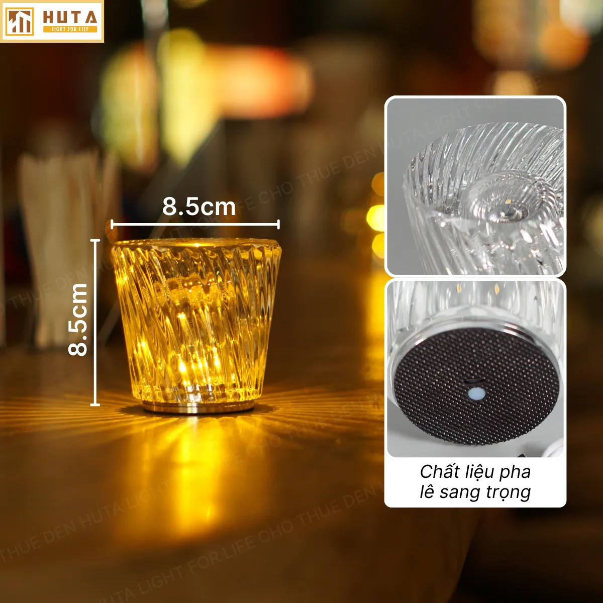 Đèn bàn LED quầy bar, nhà hàng PLCOC với chất liệu pha lê sang trọng, kiểu dáng lạ mắt, ấn tượng, tạo điểm nhấn cho không gian. Với kích thước nhỏ gọn chỉ 8.5cm x 8.5cm, đèn LED quán bar nhà hàng PLCOC phù hợp để decor trang trí quán bar, bàn ăn nhà hàng, quán cà phê