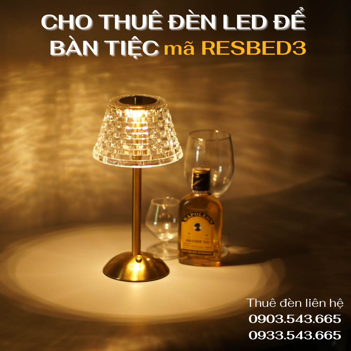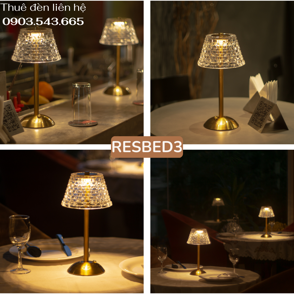 Đèn led để bàn RESBED3 đặc biệt phù hợp với những không gian sang trọng như nhà hàng, các buổi tiệc cưới, và sự kiện đặc biệt.